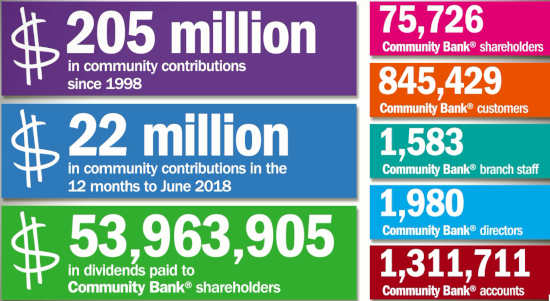 The stats below show how the 320+ Community Bank branches have contributed to communities around Australia